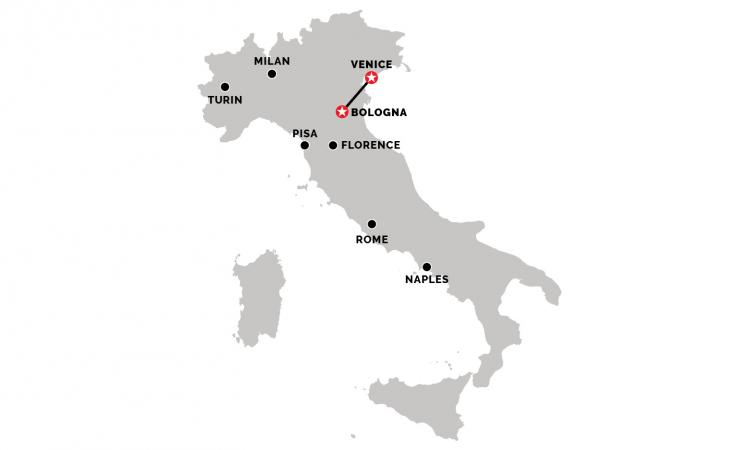 After you've visited Italy's favorite university town and stuffed your tummy, it's time to head to La Serenissima. Find out about taking the train from Bologna to Venice.