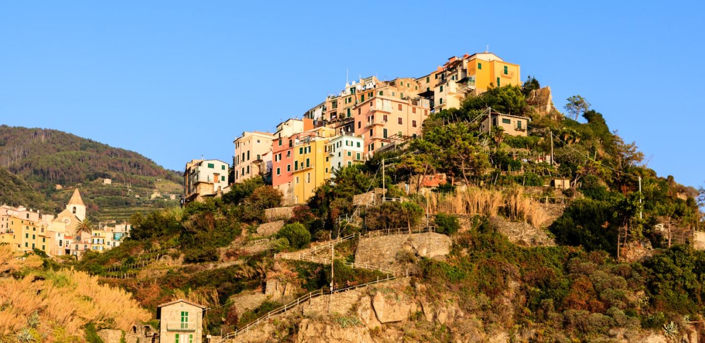 PLEASE NOTE that the Corniglia train station is at the bottom of a very steep hill, and Corniglia is at the top of the hill. Your two options to get to Corniglia are to take the 400 steps to the top of the hill, or to take one of the frequent buses that make the round trip to and from the station.