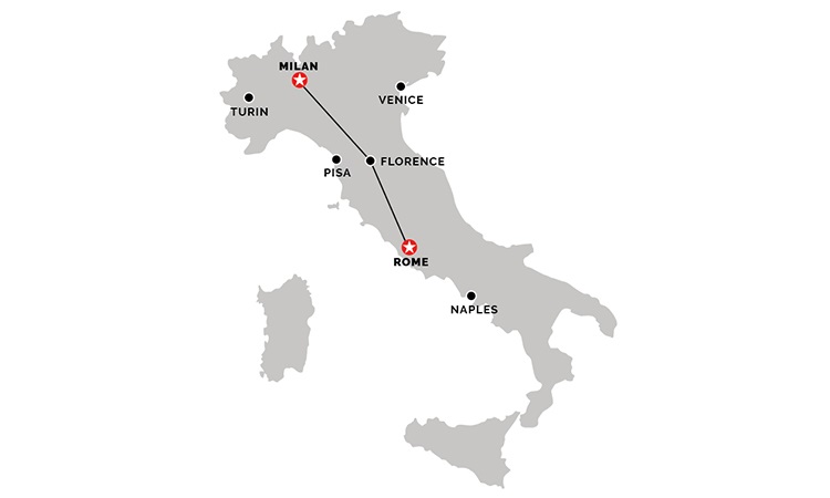 As you can imagine, traveling by train between Italy’s two international centers is an easy and efficient experience. Many of Italy’s high-speed trains make the 297-mile journey in just 3 hours and 3 minutes.