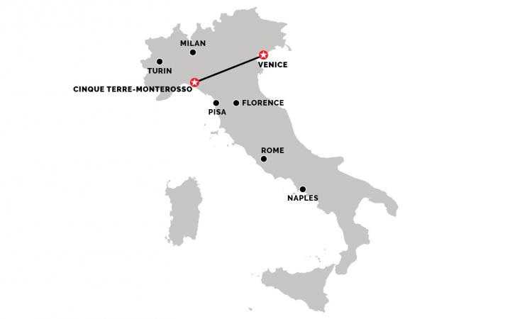 From east coast to west, from sumptuous palazzi to humble fishing villages: this trip will take you from one Italian extreme to the other. Find out all you need to know about taking the train from Venice to Monterosso in Italy’s Cinque Terre.
